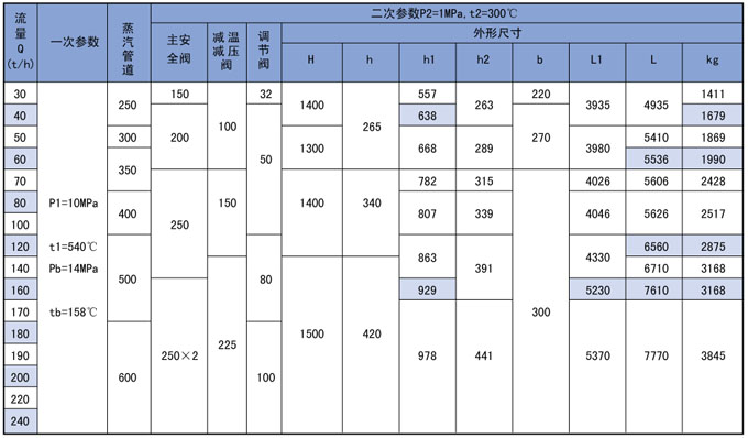 3、高温高压减温减压装置系列表