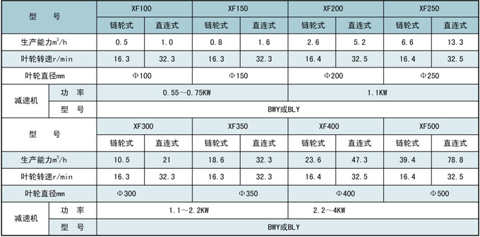 ● 根据被输送物料性质的特性可配防爆电机、调速电机等。