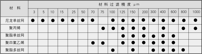 | 是一种表面型过滤织布结构,经过高温定型,以防在过滤过程中造成滤孔扩张。因而具有绝对精密过滤等级,捕捉杂质于其滤材表面上,滤袋可反复清洗再使用,具体详见下表。 |