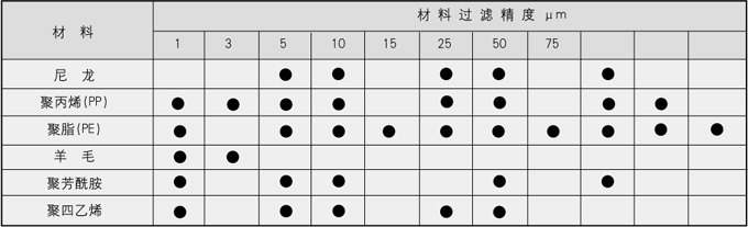 | 利用深层过滤原理工作,针毡布滤袋可滤除大量的固体或凝胶类软性质。100%纯净纤维用针刺方法做成立体三维过滤层面,较大颗粒杂质被滤袋表面捕捉,而微细颗粒则被捕捉于滤材深度中,因而是一种深度性滤材。过滤精度从1-200μ m。针毡布滤袋具有成本低、过滤面积大、压差小的优点,是最经济的过滤方式,针毡布滤袋表面经过特殊处理,确保纤维无脱落,但滤袋不可清洗和再使用。具体见下表。 |