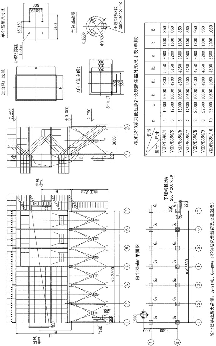 VKDPB390系列低压脉冲长袋除尘器外形图(单排)