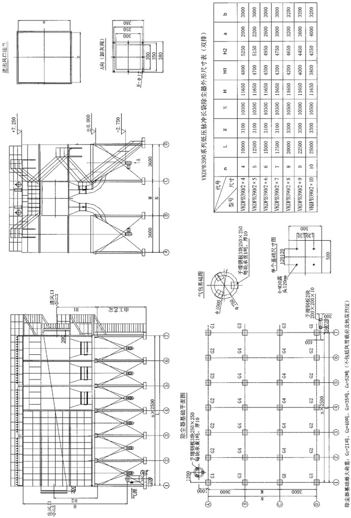 VKDPB390系列低压脉冲长袋除尘器外形图(双排)