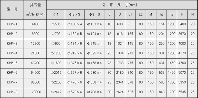 KHP型不锈钢扩散缓冲型放空消声系列规格选用表